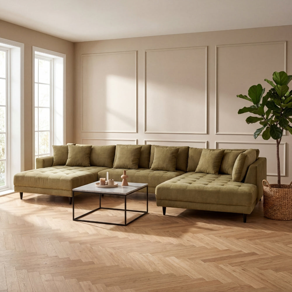 Milo U-sofa i højrevendt - Olivengrøn