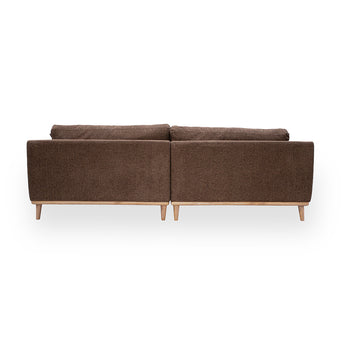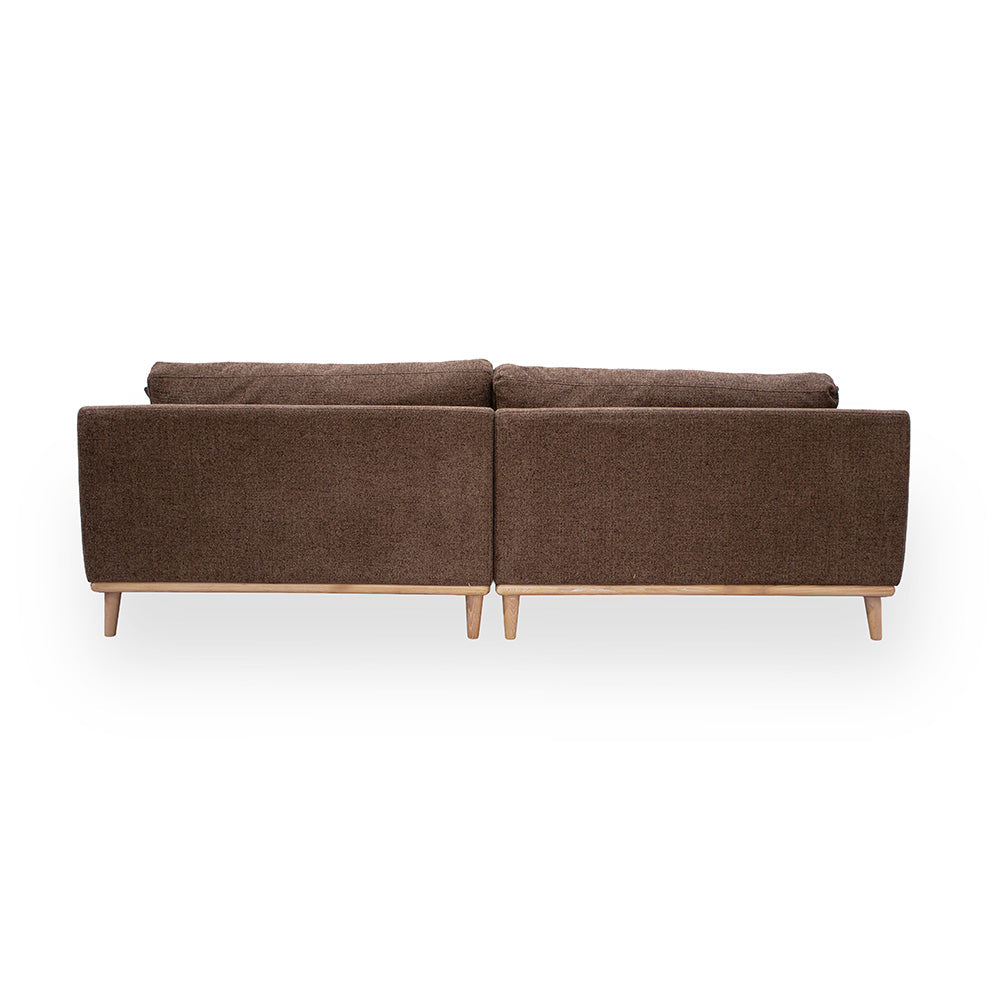 Trærammen med de lyse ben giver en flot kontrast til betrækket, og giver både sofaen og rummet et naturligt og lyst udtryk.