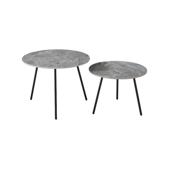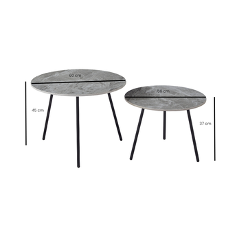 Super flot og eneklt sofabordsæt, med en flot brun keramik bordplade. Bordene er super smarte, da de kan bruges på flere forskellige måder. Brug dem som hjørnebord hver for sig, med en lampe eller plante for at skabe hygge, eller brug to ved siden af hinaden for et mere fleksibelt sofabord. Højde forskellen på bordene gør også, at du let kan "skubbe" det lille bord lidt under det store for mere plads.