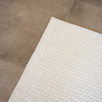 Tæppet er en blanding af 80% uld og 20% bomuld - en kombination der gør tæppet både slidstærkt og lækkert at se på.