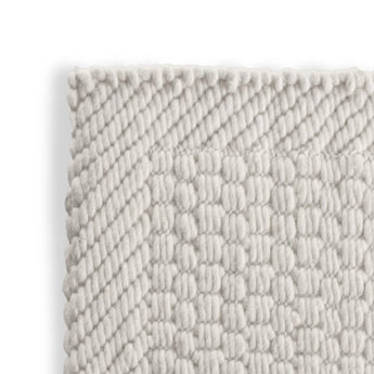 Tæppet er en blanding af 80% uld og 20% bomuld - en kombination der gør tæppet både slidstærkt og lækkert at se på.
