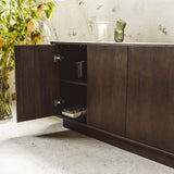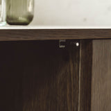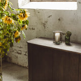 Det smoked eg skaber noget varme og dybde til rummet. Skænken er lavet i egetræs finér, som har en let lakeret overfalde, men hvor du stadig kan fornemme strukturen i træet.