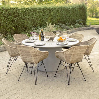 Det perfekt haveborde, der kombinerer holdbarhed, stil og funktionalitet. Med dette Trondheim havebord i Ø150 i fibercement er designet til at give din terrasse eller din have, et moderne og stilfuldt look.