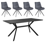 Vores meget populære Muno spisebord i 200 cm er sammensat med vores Elin Spisebordsstole i grå stof. Bordet er med en ridseresistent lakering og Elin stolene er i et højt kvalitetsstof og har drejefunktion. Det perfekte sæt til den mindre lejlighed, og ikke har så meget plads.