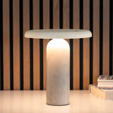 Udsmyk boligen med vores elegante Bello Bordlampe i hvid marmor. Den har et moderne design med en lampeskærm på 22 cm i diameter, der skaber et behageligt lys i ethvert rum. Der er 3 forskellige lysstyrker, som du kan styre på toppen af lampen.