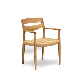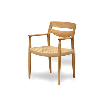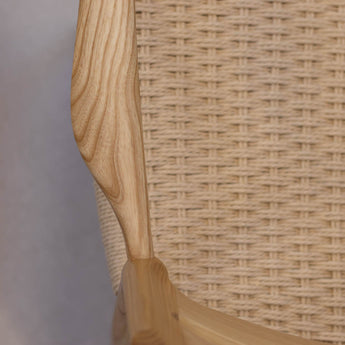 Yra spisebordsstol forener klassisk håndværk med et nutidigt formsprog. Fremstillet i massiv ask fremstår stolen lys og naturlig med smukke åretegninger, der understreger materialets ægthed. Det håndflettede sæde giver et varmt, taktilt modspil til det rene træ og sikrer god siddekomfort.