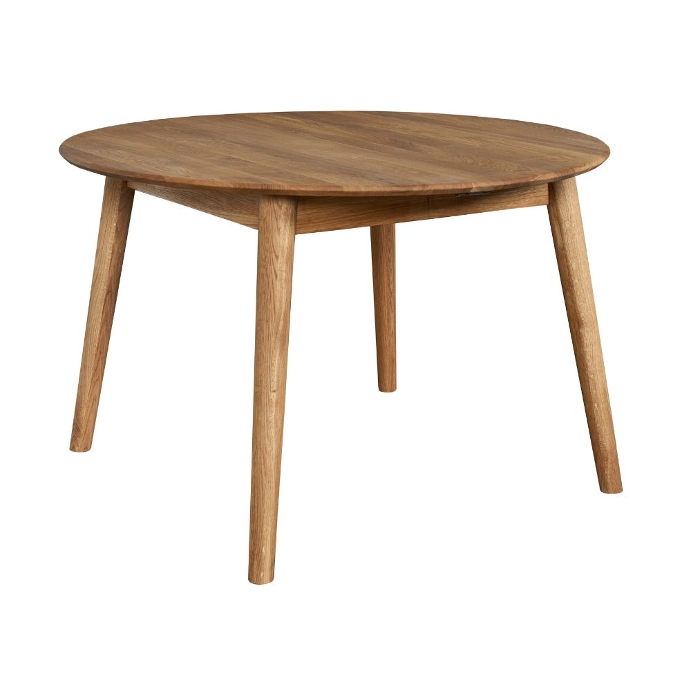 Flot rundt spisebord i naturolieret egetræ med mulighed for to tillægsplader. Bordet er enkelt og stilrent, som kan anvendes sammen med vores flotte og komfortable spisebordsstole.