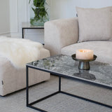 Victor sofabordet i grå keramik tilføjer et eksklusivt og sofistikeret look til din bolig. Den grå bordplade med flotte detaljer matcher perfekt med de slanke sorte metalben, der gør bordet både stilfuldt og funktionelt. Et alsidigt sofabord, der passer til enhver indretning.