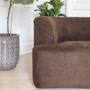 Trods den lille størrelse går du absolut ikke på kompromis med komforten. Sofaens gode polstring og siddekomfort gør den god både at sidde og ligge i. Den brune tilføjer varme og liv til rummet, og med slidstærkt stof er den perfekt til hverdagsbrug. En sofa der indbyder til tætte samtaler, varme tæpper og hyggelige stunder.