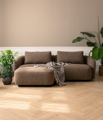 Balu Sofa - Grå/Brun Fløjl inkl. puf - 230 cm
