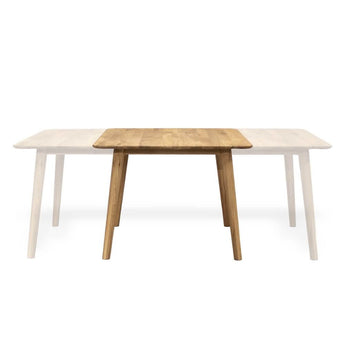 Flot egetræsspisebord i naturolieret egetræ med mulighed for to tillægsplader. Bordet er enkelt og stilrent, som kan anvendes sammen med vores lækre spisebordsstole.