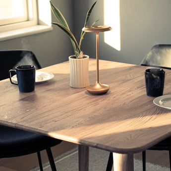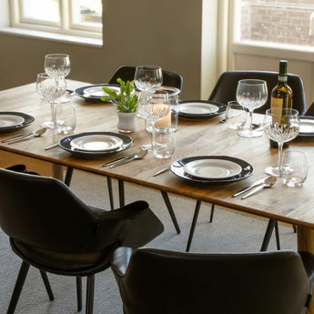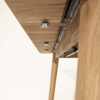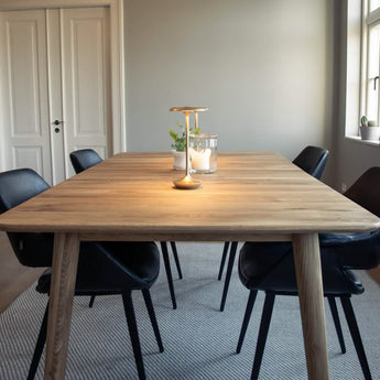 Venusbordet med plader kan du forlænge bordet og have plads til over 8 personer. Bordet er i massivt egetræ som giver en nem vedligeholdelse, hvor du samtidig kan se den smukke og naturlige struktur i træet.