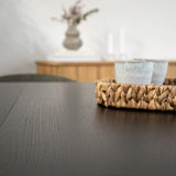 Runde spiseborde kan noget helt specielt i boligen. Det runde spisebord med den sort bejdset farve indbyder til samvær, med plads til hele familien. Måne Lamel Spisebord med tillægsplader kan nemlig blive helt op til 210 cm. Monter nemt én eller to tillægsplader alt efter behov og få plads til det hele.