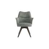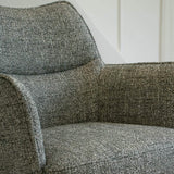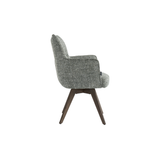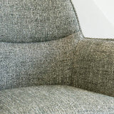 Stolen er betrukket med et smukt, meleret boucle-stof i en skøn grøn farve, som ikke blot tilføjet et eksklusivt look til stolen, men også en spændende struktur. Meleringen skaber et farvespil der gør at den passer ind i både lyse og mørkere indretningen, samtidig med at det gør det yderst praktisk overfor hverdagens brug.