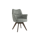 De mørke smoked eg ben er lavet i massiv træ og skaber en flot kontrast til det grønne polstrede sæde. De slanke ben giver stolen et let udtryk, som kontrast til det rummelige sæde. Stolen har drejefunktion, hvilket gør det nemt at komme ind og ud af bordet uden at man skal flytte rundt på stolen.