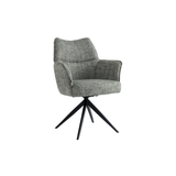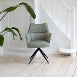 De sorte metal ben er pulverlakerede og skaber en flot sammenhæng til det grønne polstrede sæde. De slanke ben giver stolen et let udtryk, som kontrast til det rummelige sæde. Stolen har drejefunktion, hvilket gør det nemt at komme ind og ud af bordet uden at man skal flytte rundt på stolen.