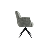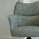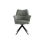 Stolen er betrukket med et smukt, meleret boucle-stof i en skøn grøn farve, som ikke blot tilføjet et eksklusivt look til stolen, men også en spændende struktur. Meleringen skaber et farvespil der gør at den passer ind i både lyse og mørkere indretningen, samtidig med at det gør det yderst praktisk overfor hverdagens brug.
