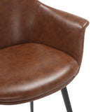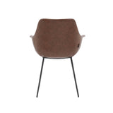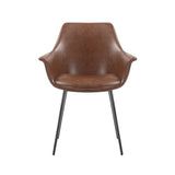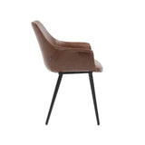 Vores helt nye Luis spisebordsstol i en høj kvalitet og lækkert design. Stolen er i en flot brun cognac PU farve, som er ekstra slidstærkt. Stolens formede ryg og armlæn giver ekstra støtte og komfort under lange måltider eller hyggelige stunder ved bordet. De slanke, sorte metalben tilføjer et moderne touch.