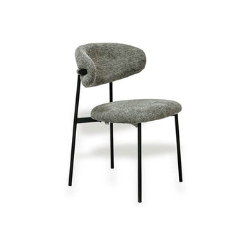 Denne spisebordsstol kombinerer et elegant, slankt stel med et blødt, indbydende sæde. Det skaber den perfekte balance mellem æstetik og komfort. Det åbne design giver stolen et luftigt udtryk, mens det sorte metalstel tilføjer et moderne og stilrent præg.