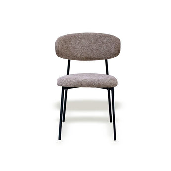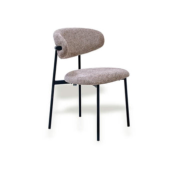 Denne spisebordsstol kombinerer et elegant, slankt stel med et blødt, indbydende sæde. Det skaber den perfekte balance mellem æstetik og komfort. Det åbne design giver stolen et luftigt udtryk, mens det sorte metalstel tilføjer et moderne og stilrent præg.