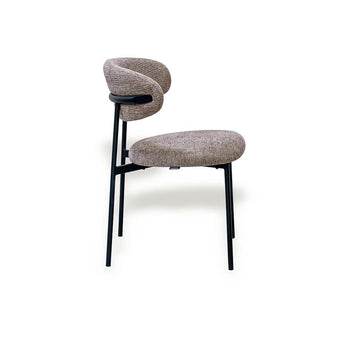 Ryglænet er let afrundet og formet, så det nærmest giver dig et lille kram, når du sætter dig – en subtil detalje, der gør en stor forskel i hverdagen. Den smukke kontrast mellem det polstrede sæde og det rå stel skaber et levende spil i indretningen og giver stolen karakter uden at virke tung. Sædet er formet således at det er bredest fortil og smaller let ind bagtil.