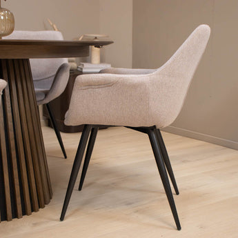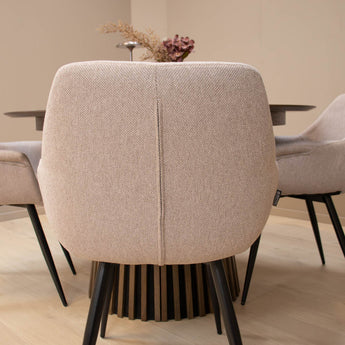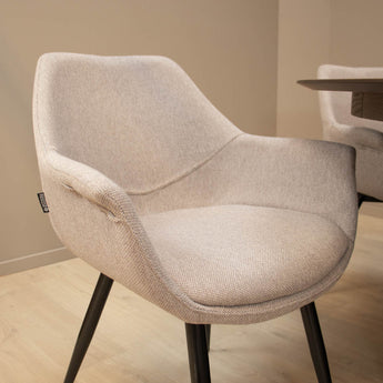 Vores Luis spisebordsstol i en høj kvalitet og lækkert design. Stolen er lavet i en flot beige stof med fokus på siddekomfort.