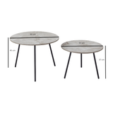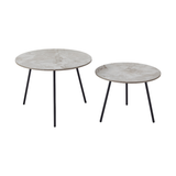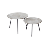 Super flot og enkelt sofabordsæt, med en flot beige keramik bordplade. Bordene er super smarte, da de kan bruges på flere forskellige måder. Brug dem som hjørnebord hver for sig, med en lampe eller plante for at skabe hygge, eller brug to ved siden af hinanden for et mere fleksibelt sofabord. Højde forskellen på bordene gør også, at du let kan "skubbe" det lave bord lidt under, for mere plads.