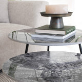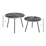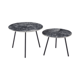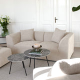Super flot og enkelt sofabordsæt, med en flot grå keramik bordplade. Bordene er super smarte, da de kan bruges på flere forskellige måder. Brug dem som hjørnebord hver for sig, med en lampe eller plante for at skabe hygge, eller brug to ved siden af hinanden for et mere fleksibelt sofabord. Højde forskellen på bordene gør også, at du let kan "skubbe" det lille bord lidt under det store for mere plads.