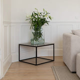 Super flot og enkelt hjørnebord med en flot beige keramik bordplade. Hjørnebordene er super smarte, da de kan bruges på flere forskellige måder. Brug dem som hjørnebord, med en lampe eller plante for at skabe hygge, eller brug to ved siden af hinanden for et mere fleksibelt sofabord.