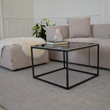 Super flot og enkelt hjørnebord med en flot beige keramik bordplade. Hjørnebordene er super smarte, da de kan bruges på flere forskellige måder. Brug dem som hjørnebord, med en lampe eller plante for at skabe hygge, eller brug to ved siden af hinaden for et mere fleksibelt sofabord.