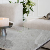 Elegant og moderne sofabord med en overflade af keramik. Bordpladen i brun keramik tilfører et elegant og flot udtryk, der passer ind i et moderne hjem. Med sorte metalben som kontrast til bordpladen er dette sofabord en praktisk og stilfuld løsning til stuen.