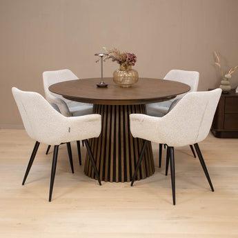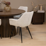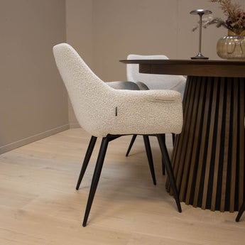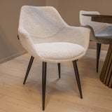 Vores Luis spisebordsstol i en høj kvalitet og lækkert design. Stolen er lavet af boucle stof i en flot lys farve med fokus på siddekomfort.