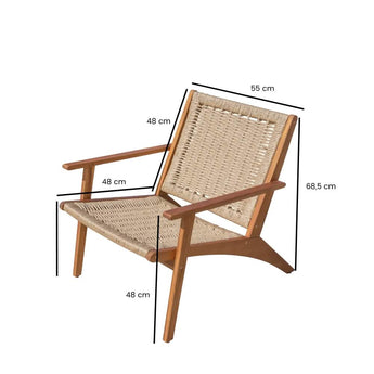 Skab ægte sommerstemning på terrassen med denne smukke loungestol i naturmaterialer. Stolen er fremstillet i robust og holdbart akacietræ, der med sin varme glød og naturlige struktur bringer en tidløs elegance til dine udendørs omgivelser. Sæde og ryg er håndflettet i PE rattan i en lys natur farve, hvilket tilføjer et let og luftigt udtryk og giver en behagelig siddekomfort.