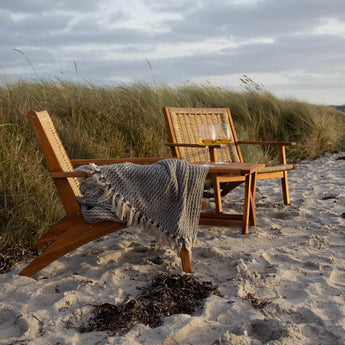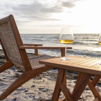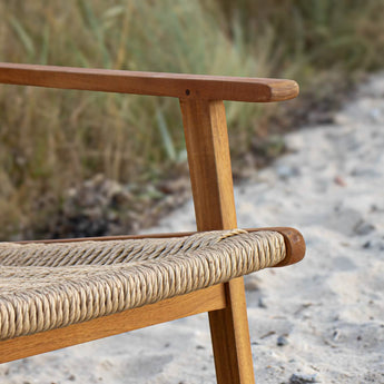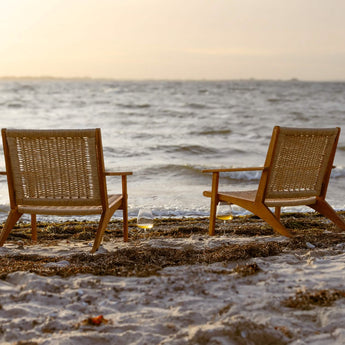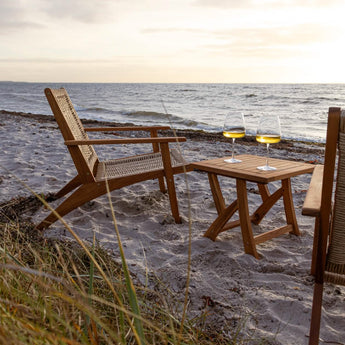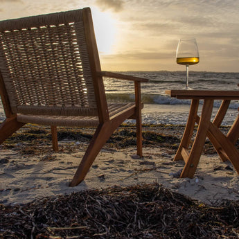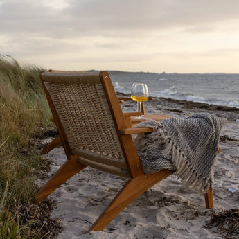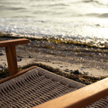 Perfekt til afslappende stunder i solen, en god bog i skyggen eller lange aftener under åben himmel. Stolen kombinerer klassisk håndværk med moderne loungeæstetik – en ideel makker til sommerens stille øjeblikke.