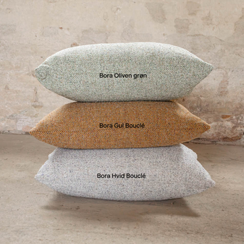 Pyntepude som passer i farven til vores Bora Sofa i Olivengrøn Bouclé.