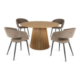 Spisebordssæt - Måne Lamel Spisebord Natur Ø120 cm + Nilo Grå/brun Stof