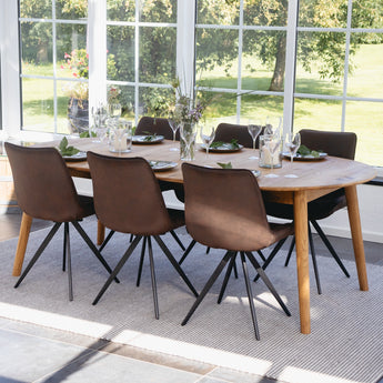 Med Venus Rundt Spisebord kan du forlænge bordet og have plads til over 8 personer. Bordet er i massivt egetræ som giver en nem vedligeholdelse, hvor du samtidig kan se den smukke og naturlige struktur i træet.